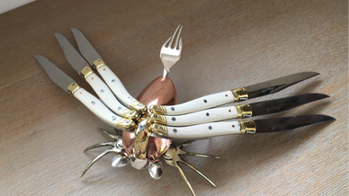 Entièrement fabriquer avec ancien couverts achetés à un vide-grenier.