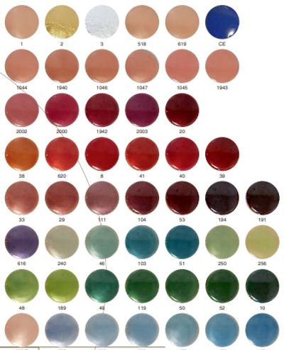 Photo is an example of enamel colours from Soyer's colour 'nuancier' (https://www.emaux-soyer.com/media/pdf/cristallerie_saint-paul.pdf)