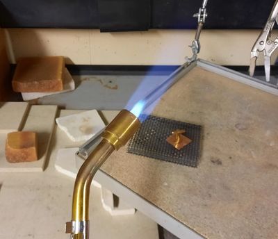 We use bottled gas to anneal metal and to solder pieces of metal together. Fossil fuels are clearly a major contributor to climate change due to the CO2 emissions from combustion. An alternative approach is to use an electric spot welder rather than a flame. However, that equipment is very expensive, bulky and does not produce exactly the same results. So we are interested but not in the short term. Also, the 'cleanliness' of the electricity needs to be considered too. Luckily in France, the electric grid is pretty clean with between 20 and 30% renewable energy and 60 to 70% nuclear neither of which produce CO2 emissions. I'd recommend checking out this website for more interesting details www.nowtricity.com.